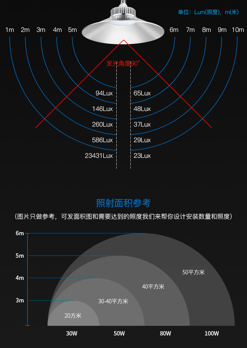 發(fā)光面積大,照射范圍廣,燈光分布均勻